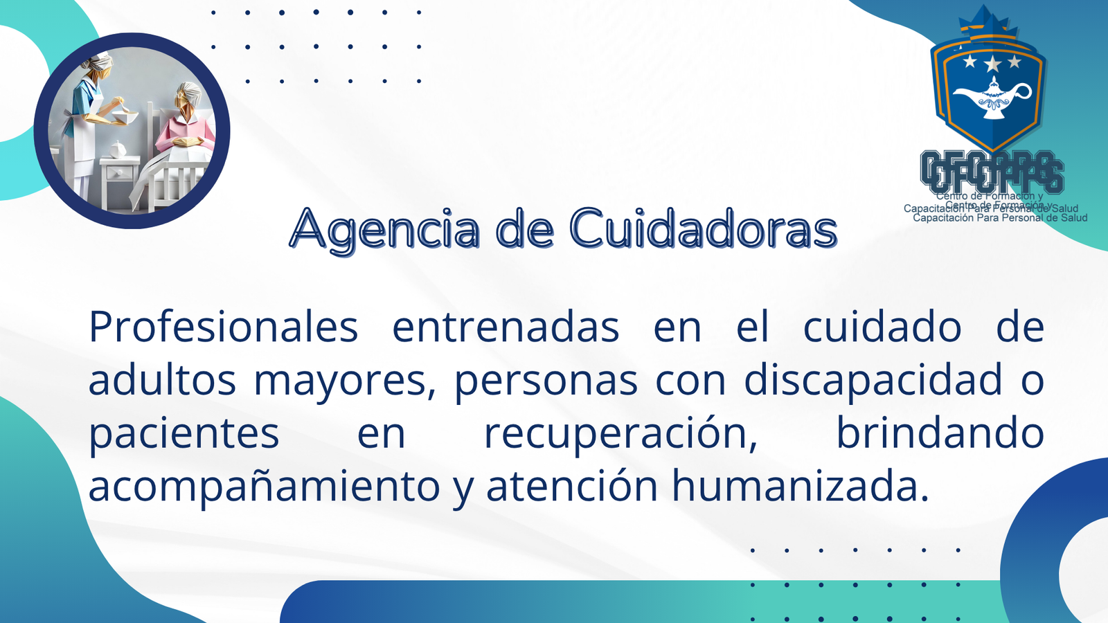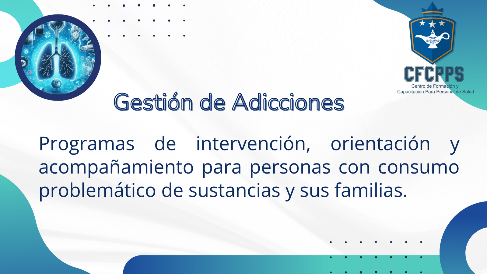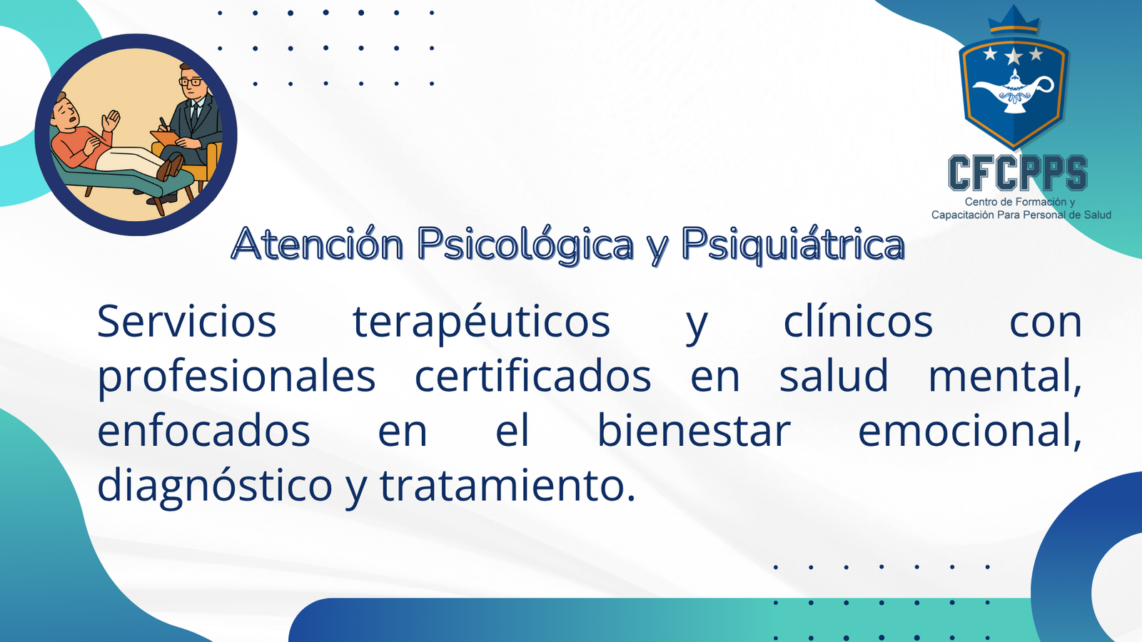 | En el Centro de Formación y Capacitación para Personal de Salud complementamos nuestra labor educativa con una amplia gama de servicios profesionales de salud, diseñados para atender a pacientes, familias, empresas y comunidades con calidad, ética y calidez humana |