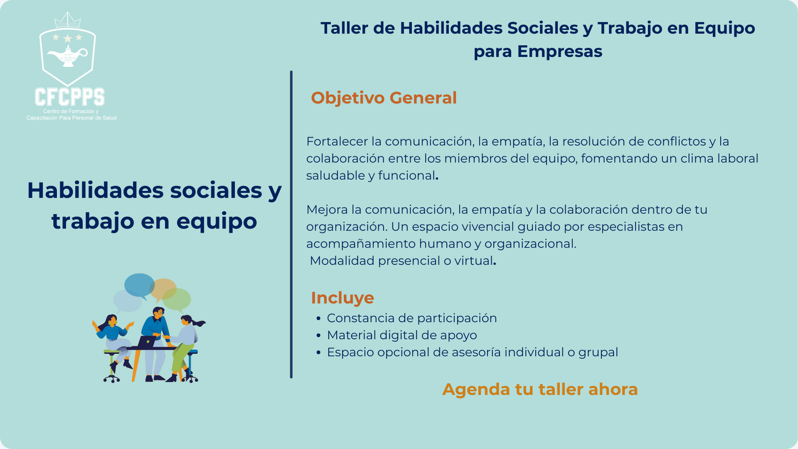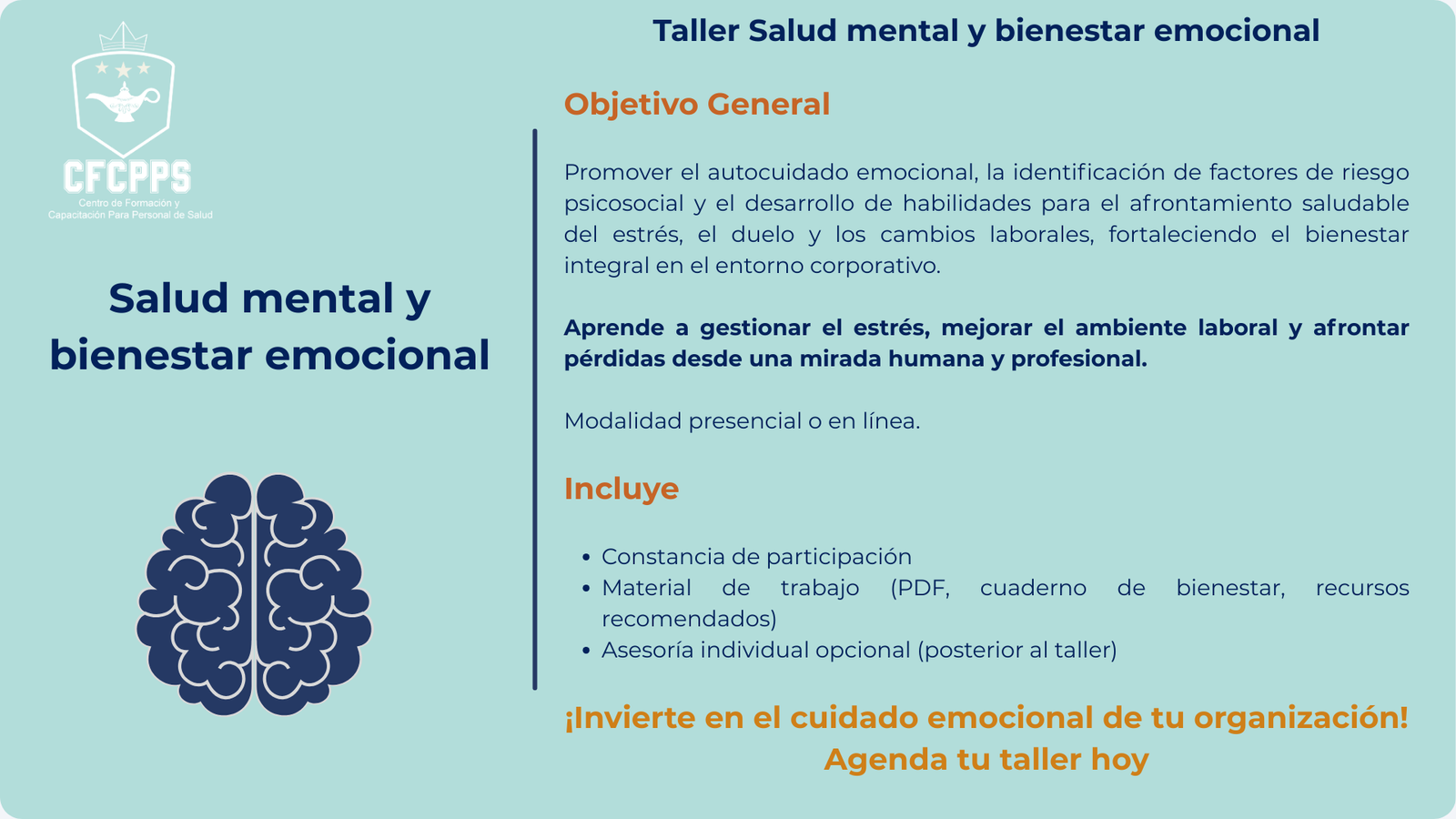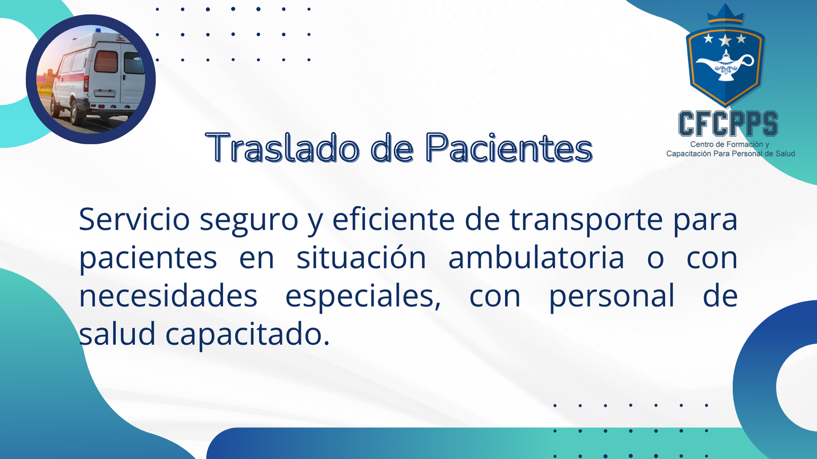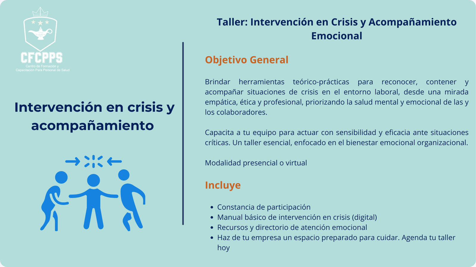 | En el Centro de Formación y Capacitación para Personal de Salud complementamos nuestra labor educativa con una amplia gama de servicios profesionales de salud, diseñados para atender a pacientes, familias, empresas y comunidades con calidad, ética y calidez humana |